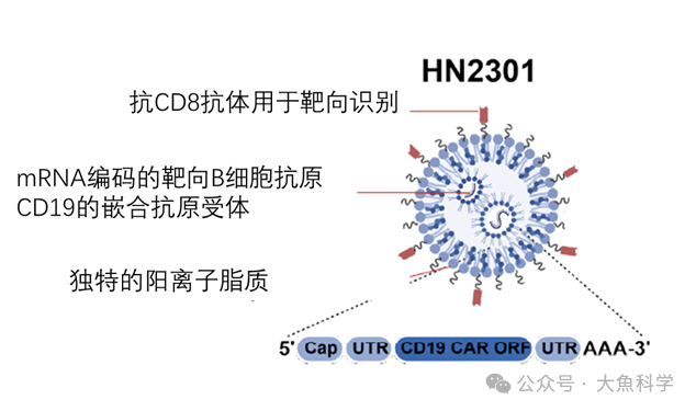 为突破病毒载体介导体内 CAR-T 的安全与可控性难题,首项 LNP 介导体内生成 CAR-T 临床研究取得进展。该研究用抗 CD8 抗体修饰 LNP 靶向杀伤性 T 细胞,无需清淋预处理,采用 “每两天 1 剂共 3 剂” 方案,6 小时即观察到 B 细胞减少,高剂量组 CAR 阳性 CD8⁺T 细胞占比最高达 60%,B 细胞清除可持续 10 天至 1 月。虽 CAR 表达仅约 2 天、清除持久性不及自体 CAR-T,但初步验证了安全性与有效性,为自身免疫病治疗及 “疫苗式 CAR-T” 模式提供新技术路径。