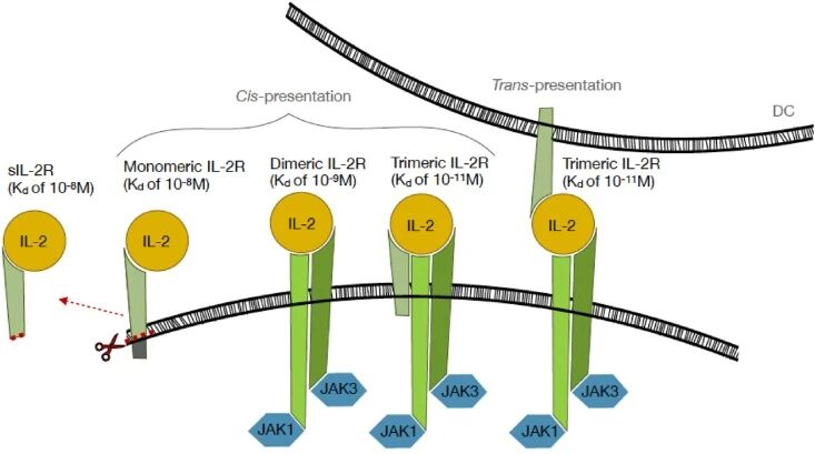 白介素 - 2(IL-2)是调控 T 细胞的核心细胞因子,1976 年被发现,1980 年被明确为 T 细胞生长因子。其通过结合三种 IL-2 受体复合物(低亲和力 α 链、中亲和力 βγc、高亲和力 αβγc)激活下游三大通路,驱动 T 细胞增殖周期进程、促进效应分子表达,还能形成正反馈环路上调自身及受体表达。IL-2 受体高表达于激活的 T 细胞、Treg 细胞及 NK 细胞,是适应性免疫应答的关键调控因子