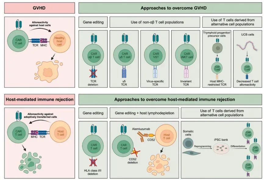 本文核心对比 Allo CAR-T 与体内 CAR-T 两种突破传统的 CAR-T 技术。Allo CAR-T 采用健康供体 T 细胞,经基因编辑敲除 αβ TCR 和 CD52,解决移植物抗宿主病与免疫排斥问题,制成现货产品,技术路径明确且有临床数据支持,短期商业化可行性高。体内 CAR-T 通过工程化病毒载体在体内完成 T 细胞原位改造,流程更简化、成本更低,代表长期颠覆性方向,但仍面临递送效率等技术挑战。二者均以血液瘤为主要应用场景,为细胞治疗赛道的布局提供了不同选择。