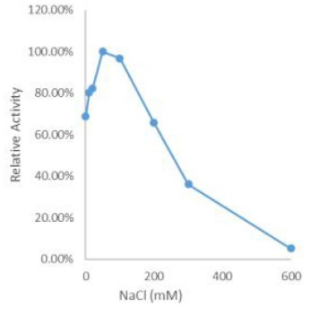 图1.Pannarase耐高盐全能核酸酶耐盐曲线