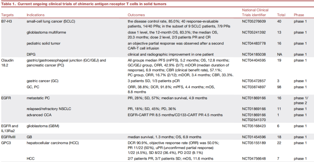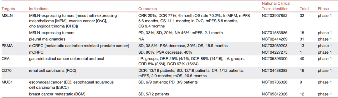 收藏,具体各GD2、Claudin18.2靶向等CART的临床疗效详见表格。