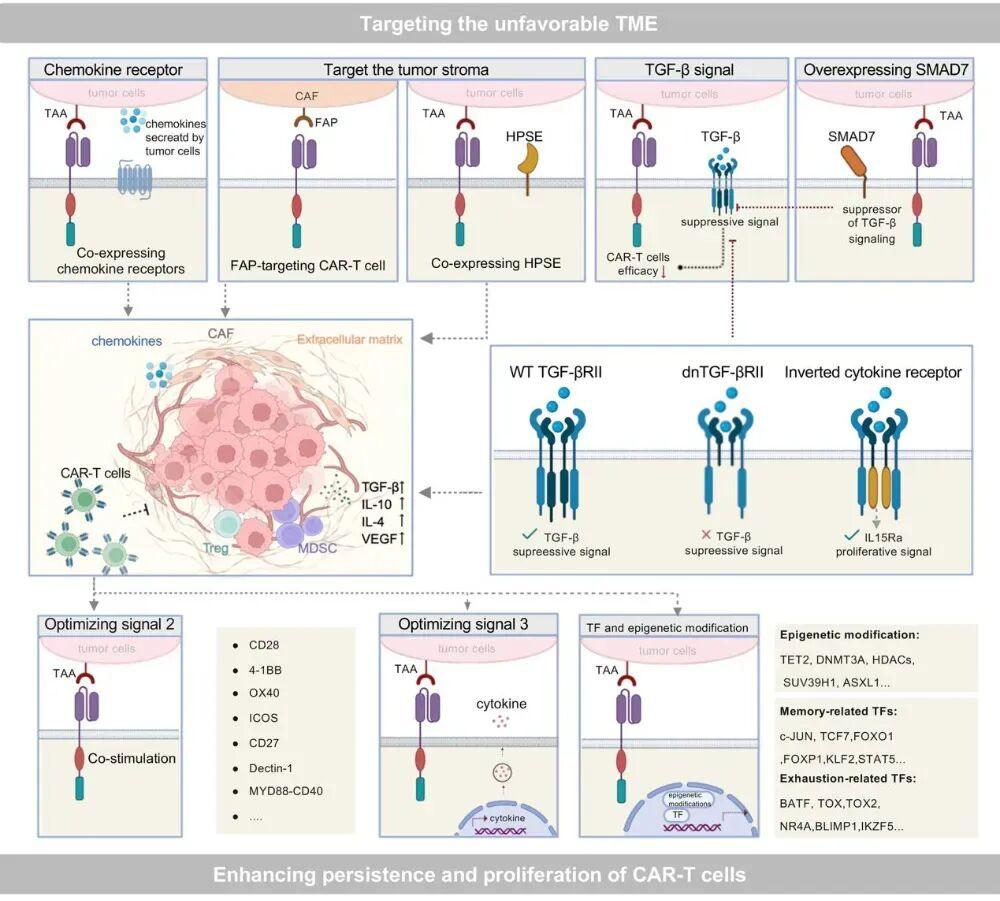 靶向TME并增强CAR-T持久性与增殖的策略