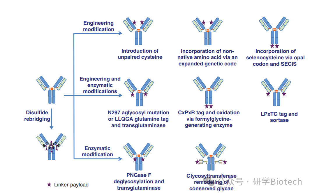Asn-297是人IgG恒定区内N-连接糖基化的唯一规范位点。由于其远离抗原结合位点且对抗体药代动力学影响最小,聚糖是具有吸引力的偶联位点。用高碘酸盐氧化天然聚糖产生活性醛基是常见的方法;然而,反应条件可能导致异质混合物、蛋氨酸残基氧化以及结合活性丧失。