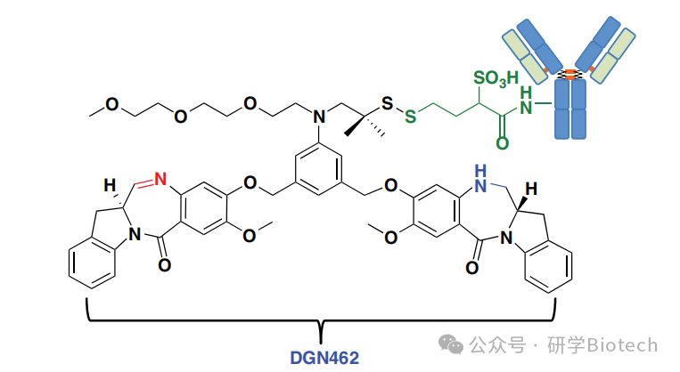 图3 IMGN-779结构示意图,一种含有吲哚并苯二氮䓬二聚体DGN462的抗CD33 ADC