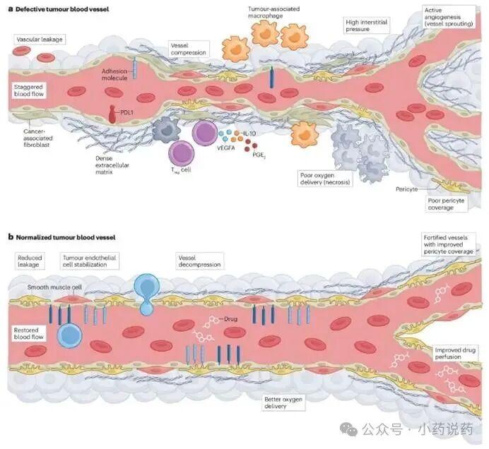 TAV正常化是2001年首次提出的一个概念,通过特定干预,修剪不成熟的血管,加固成熟的血管,恢复其结构完整性、血流、灌注和通透性,同时降低渗漏性。从而可以达到改善药物递送,增强效应T细胞的迁移与功能,以及促进免疫细胞浸润的目的。