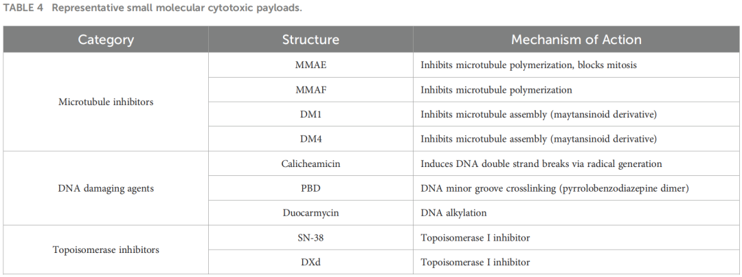 载荷通常为高效细胞毒性小分子药物,包括微管抑制剂、DNA损伤剂和拓扑异构酶抑制剂。载荷需具备极高的活性,以在有限递送条件下发挥杀伤作用。