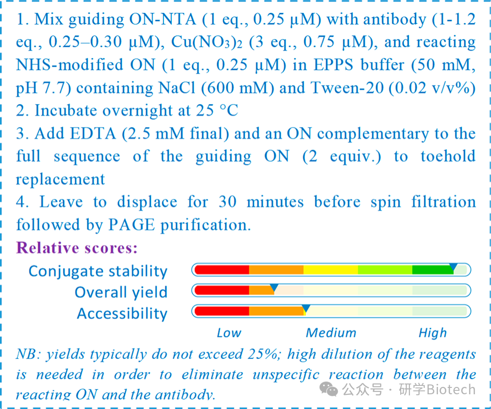 DNA模板引导的蛋白质偶联:利用DNA杂交将反应基团引导至抗体特定区域,实现位点选择性标记。