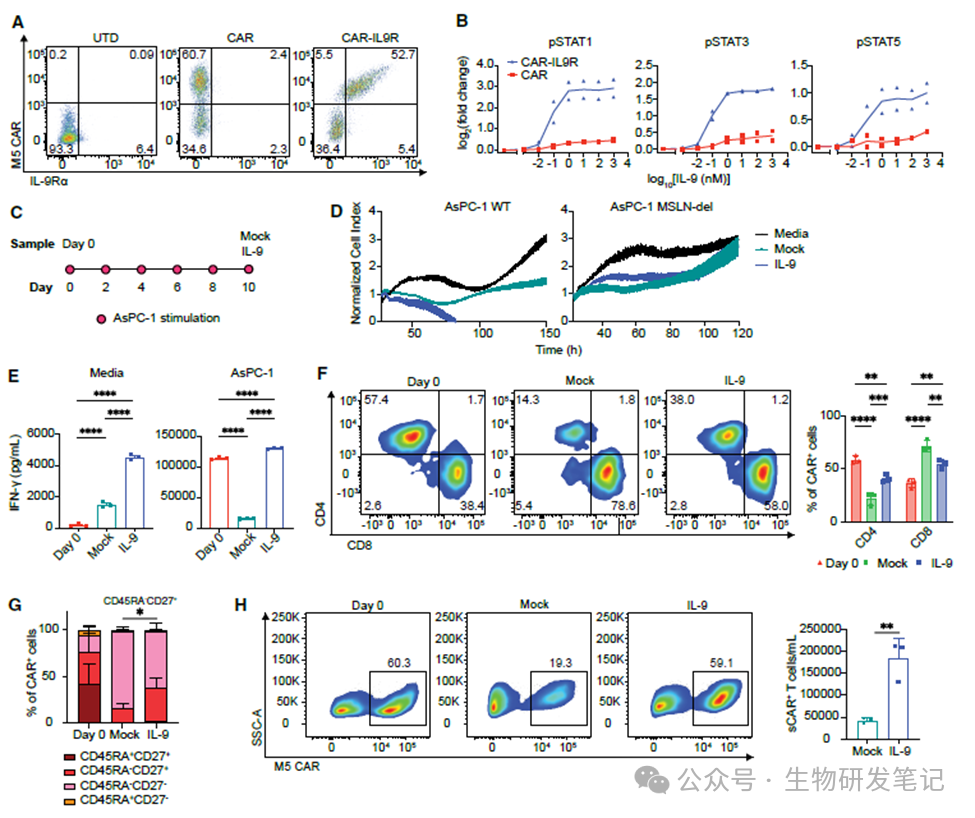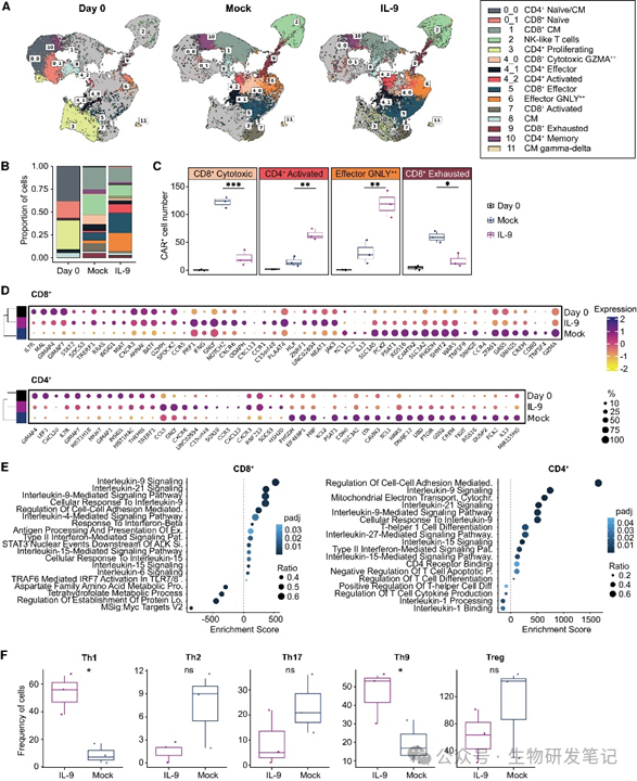 研究团队利用单细胞RNA测序(scRNA-seq)等先进技术解析了IL-9信号如何重编程CAR-T细胞: