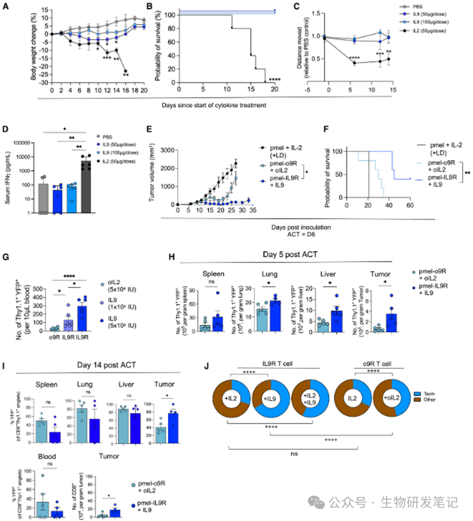 对CD4+ T细胞:IL-9信号促进其向具有增殖能力的效应状态发展,并偏向于产生抗肿瘤相关的Th1和Th9细胞亚型,这些细胞能分泌大量IFN-γ和TNF-α等关键抗肿瘤细胞因子。