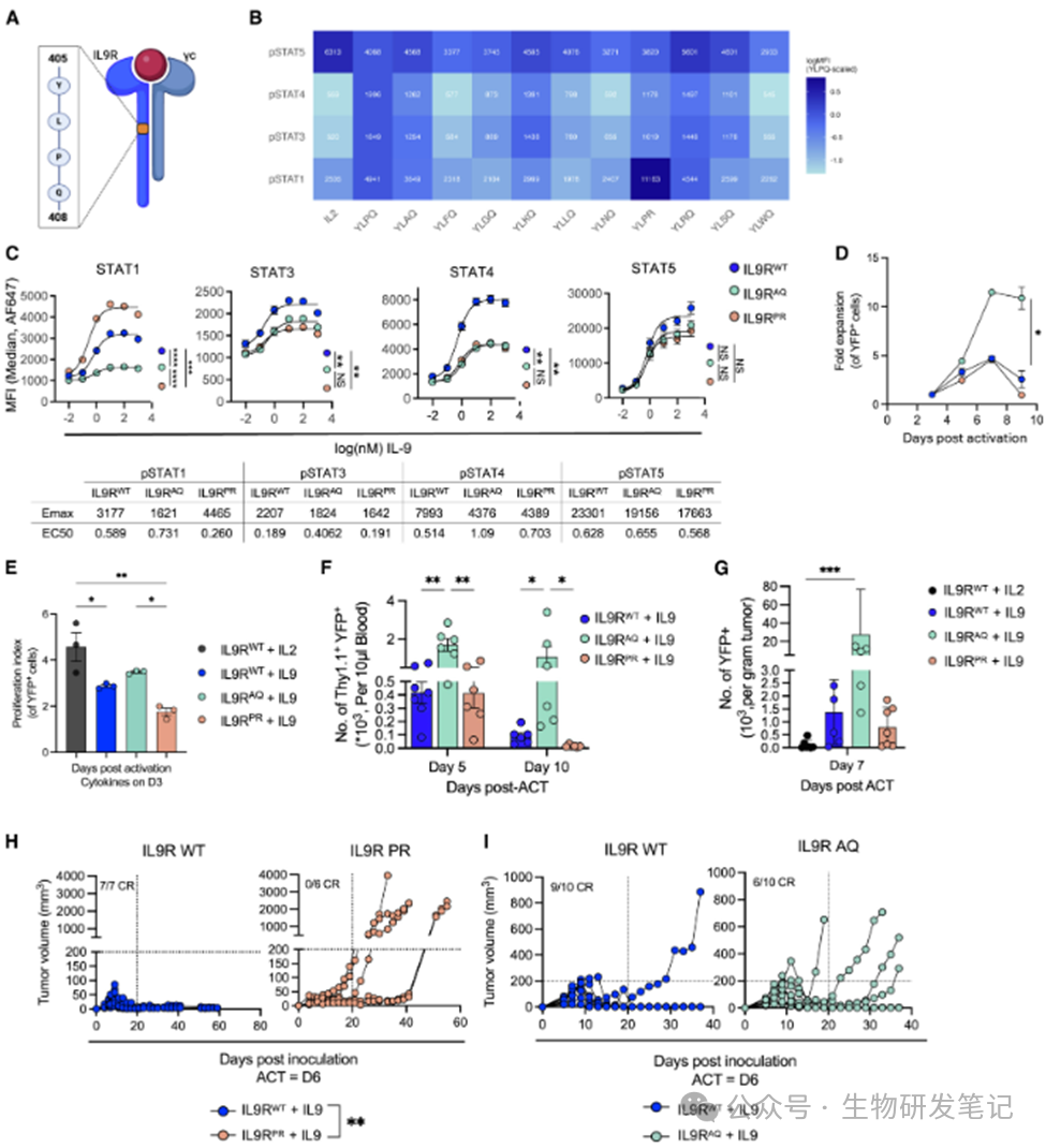 ● 更进一步地,研究团队发现STAT1作为T细胞命运的“调节器”。通过精细设计IL-9R胞内域的单个氨基酸突变,研究团队成功“偏置”了其激活的STAT信号组合,特别是调控了STAT1的激活水平,发现: