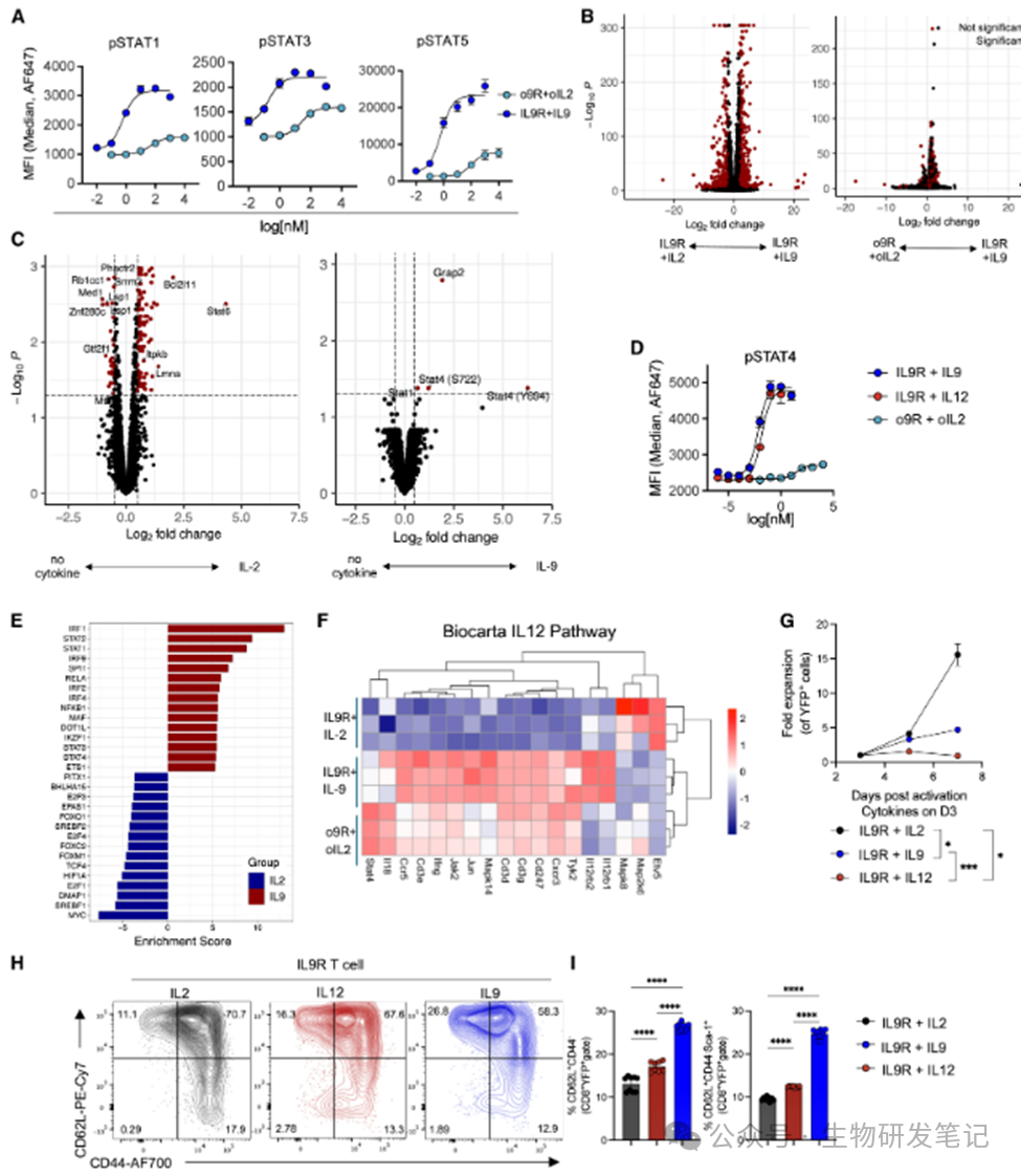 (2)阐明新机制:揭示了IL-9R信号意外激活STAT4这一全新机制,并阐明其通过最优的STAT信号强度和平衡(特别是STAT1的调节作用)来重编程T细胞命运,使其获得“超级”抗肿瘤能力。
