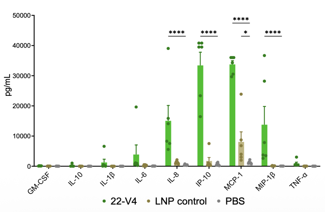 纳米抗体修饰的LNP介导细胞因子分泌,暗示有一定免疫原性