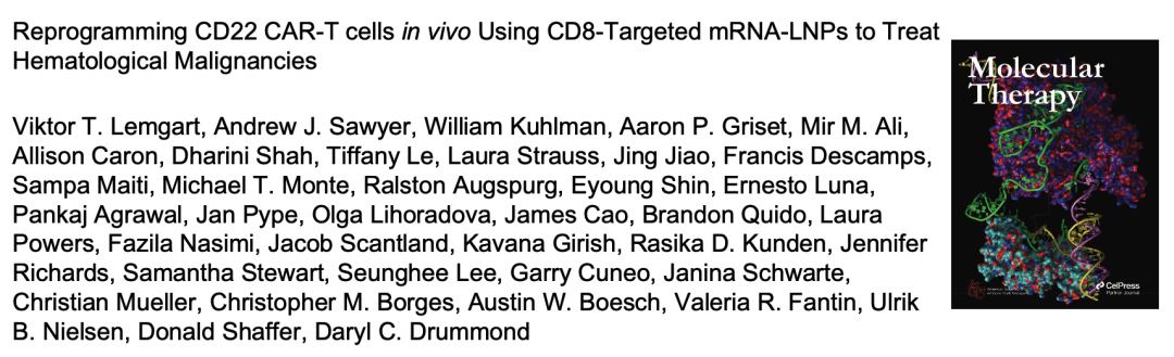 In vivo CAR-T赛道火热,各大药企纷纷关注,分享一个赛诺菲做的in vivo CAR-T,具体内容如下: