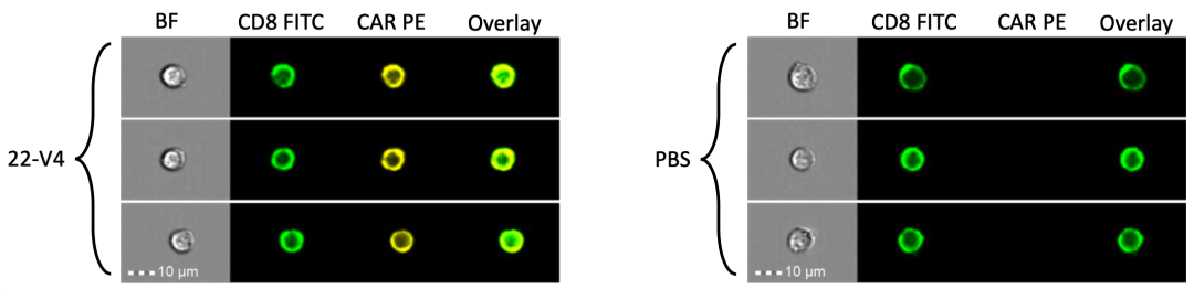 成像流式数据说明纳米抗体修饰的LNP体外介导CD8 T细胞表达CAR