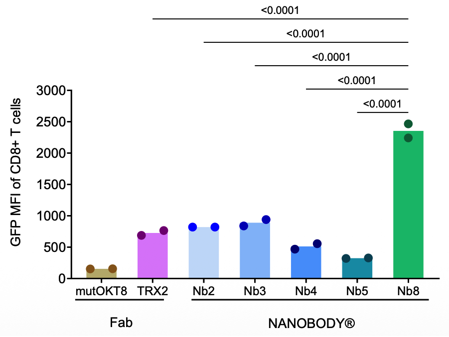 纳米抗体Nb8修饰的LNP高效介导CD8 T细胞表达GFP