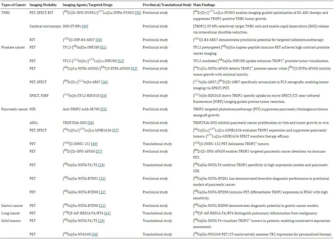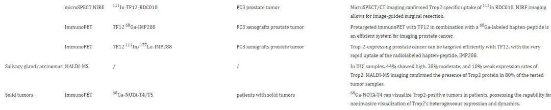 不同实体瘤中的TROP2靶向成像应用