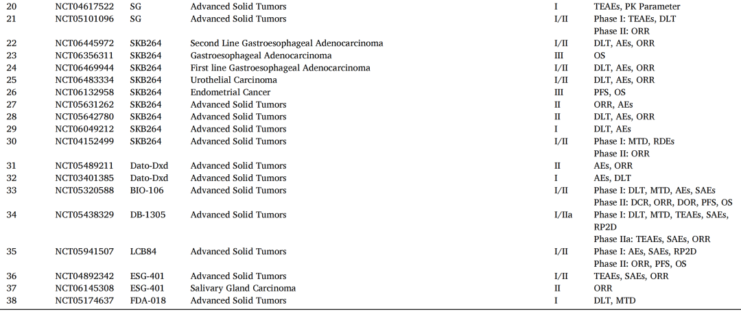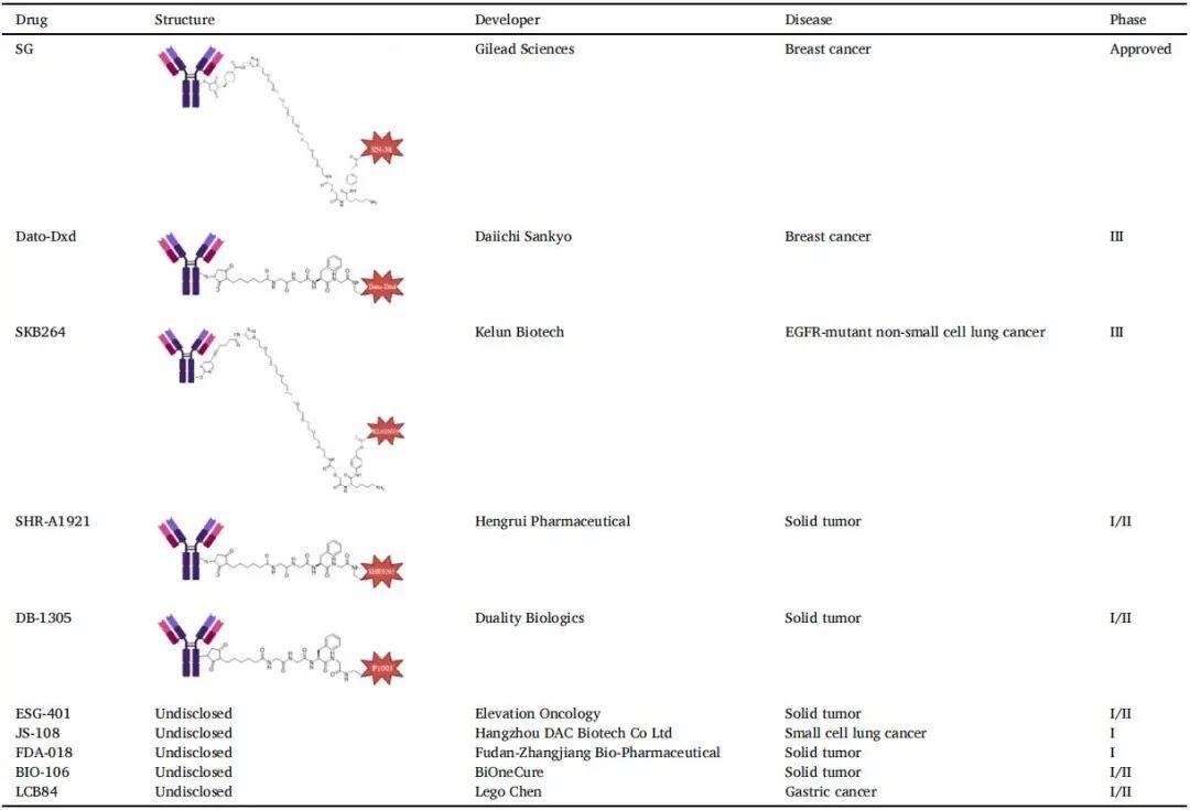 表1 TROP2-ADCs的药物结构及其他信息
