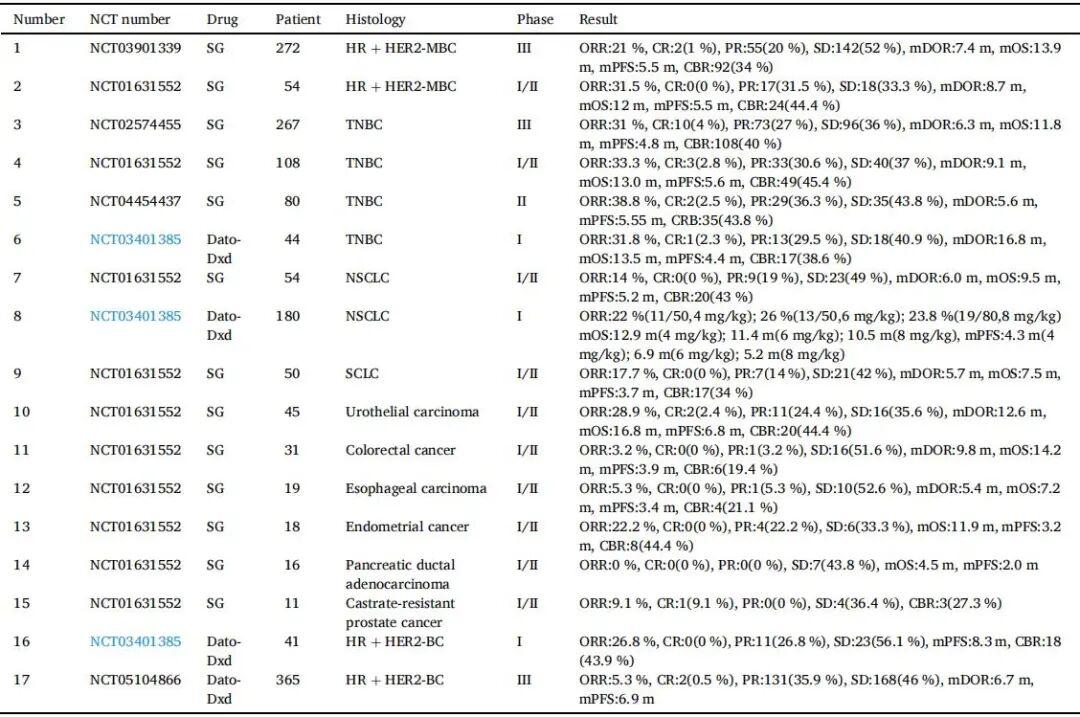 ①SG:在TROPiCS-02-III期试验中,显著改善HR+/HER2-转移性乳腺癌患者的PFS(5.5个月vs4.0个月)和OS(13.9个月vs12.3个月),成为标准治疗选择。