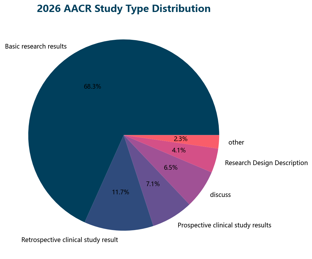 - 基础研究(5,360篇)占比最大,提示大量靶点验证和机制研究正在产出