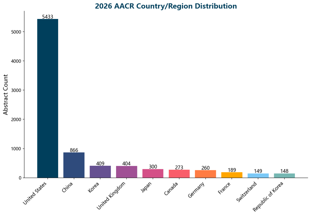 2026年AACR年会共收录超过9,500篇摘要,覆盖全球超过40个国家和地区的研究机构、企业。本报告从BD视角提炼以下核心发现: