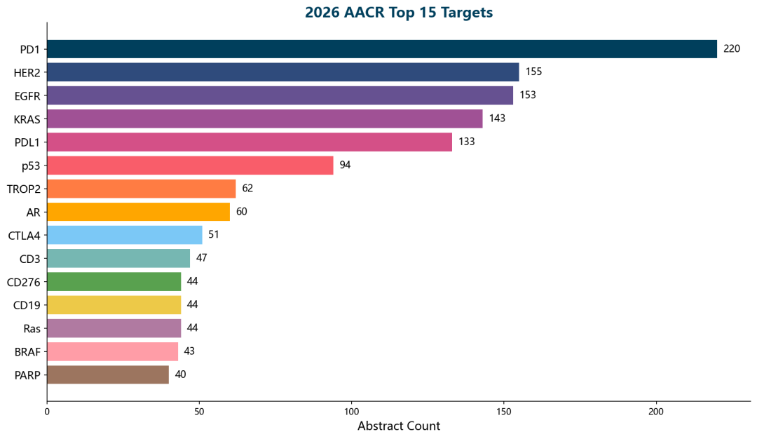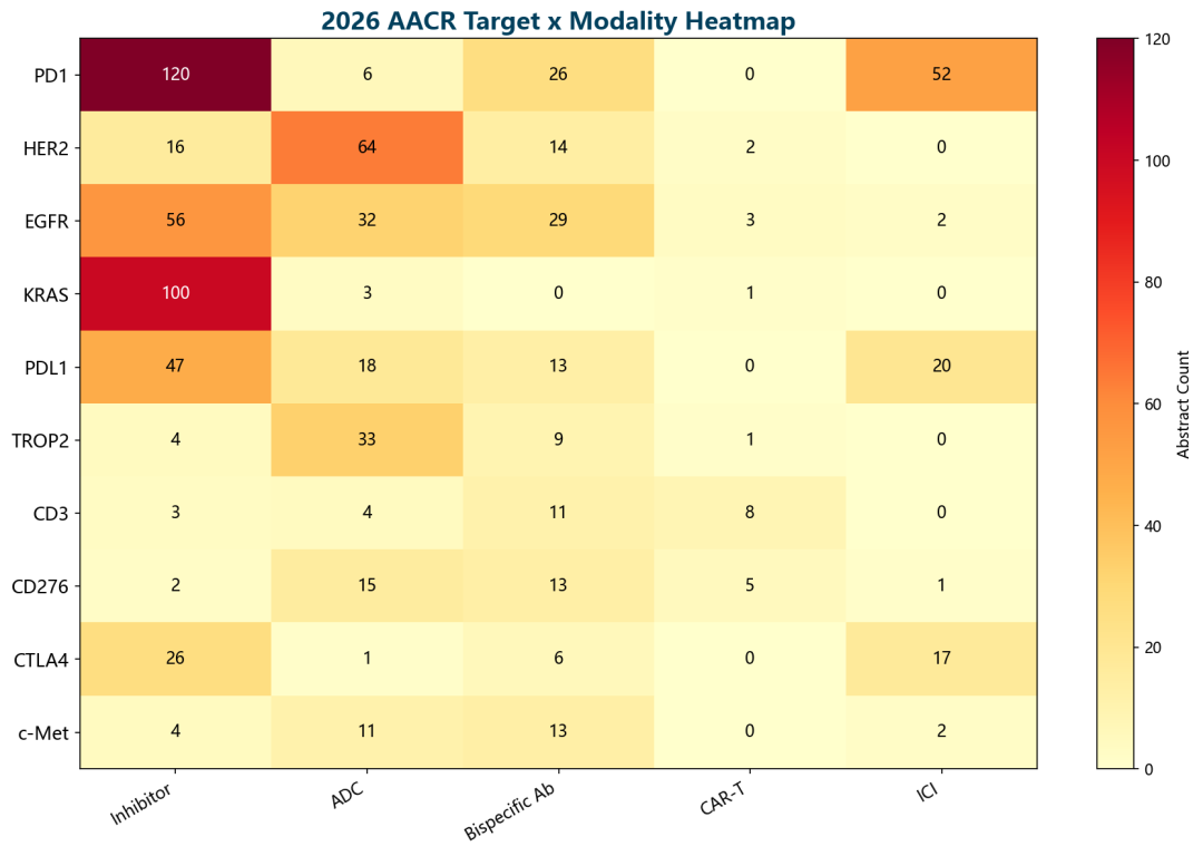 | 靶点 | 摘要数 | 主要模态 | 适应症 | 成熟度 |