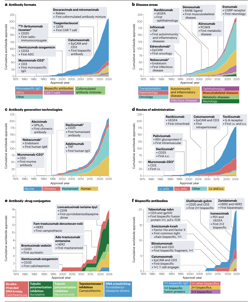 AI开始深度介入抗体研发,多参数优化能快速筛选出高亲和力、低粘度、低免疫原性的候选分子。条件性抗原结合、IgM/IgA等非IgG亚型、口服抗体、血脑屏障穿透技术,都在稳步推进。某种程度上,单抗的50年只是起步,那些难攻克的靶点、难送达的病灶,还等着新的抗体技术去破解。